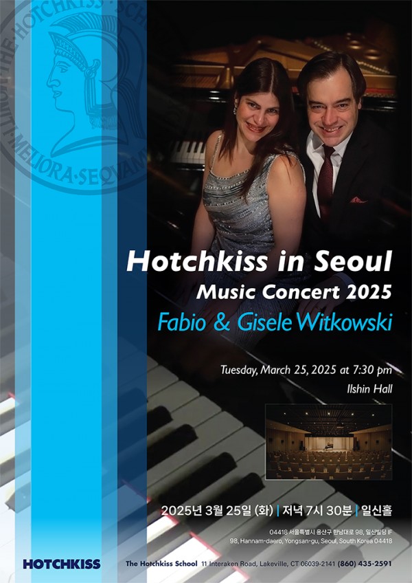 Concomitantly to their performing careers, they enjoy a busy academic life, both teaching at the Hotchkiss School, where Mr. Witkowski is the Head of the Department of Visual and Performing Arts and Director of the music program. Mr. Witkowski holds a cum laude BM and MM from the Hartt School of Music. Mrs. Witkowski received her Masters degree from the Manhattan School of Music and holds a Doctor of Musical Arts Degree from the Hartt School of Music. Mr. and Mrs. Witkowski have appeared as guest artists and professors in numerous music festivals, including the Amalfi Coast Music Festival in Italy, the Granada Piano Festival in Spain, the Wintergreen Summer Music Festival and Hotchkiss Summer Portals in the USA, and the São João del Rey, Belém, Londrina, and Ourinhos Music Festivals in Brazil. They are currently directors of the Hotchkiss in Italy Music Program and the Hotchkiss Piano Summer Portals in the USA.